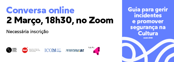 Conversa online2 de Março, 18h30-19h30Faça a sua inscrição No dia do evento, receberá o link para aceder à sessão. Esteja atento!! Nos últimos tempos, o sector da Cultura tem vindo